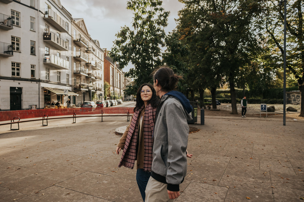Photos in Copenhagen, Denmark is a dream come true for any photographer. The city's architecture, canals, green spaces, and the Danish concept of hygge provide endless opportunities for creating memorable, romantic images. As you plan your engagement photoshoot in Copenhagen, remember to embrace the city's unique charm and let the love between the engaged couple shine through each frame. The result will be a beautiful collection of images that not only celebrate their love but also the enchanting spirit of this remarkable city. These photos were taken in the Vesterbro neighborhood in Enghaveparken park.