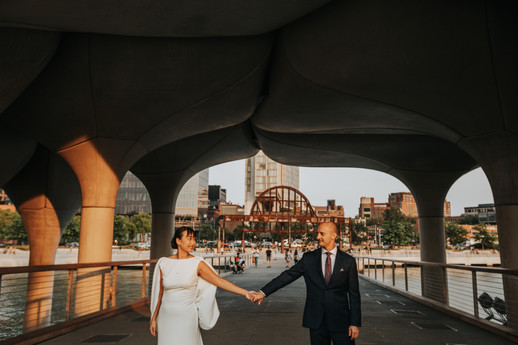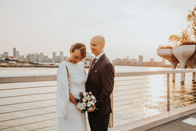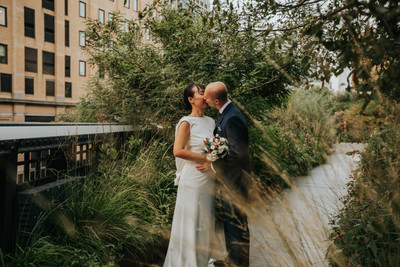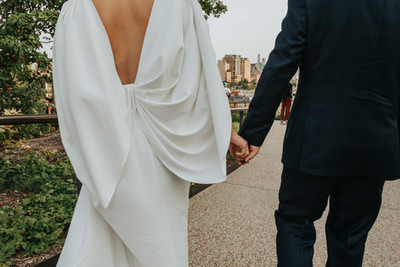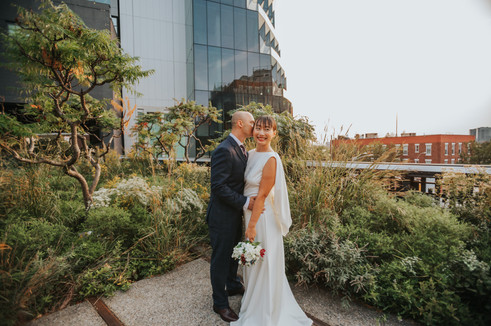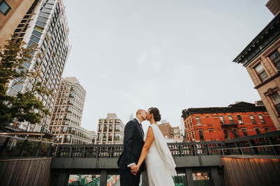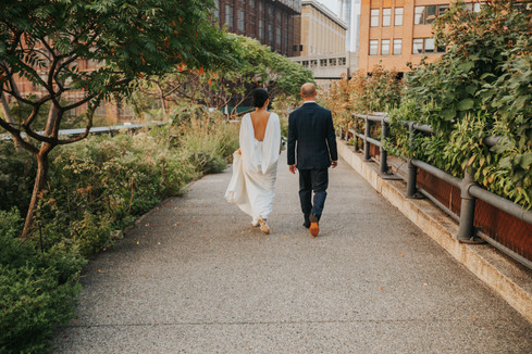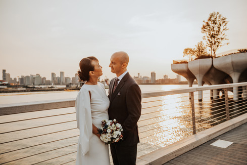 Getting back to this beautiful couple. Early on during their engagement they decided that when the day came they wanted to do something smaller and more intimate just for them. And I am so happy they made this decision, this location was everything! Amazing shapes and architecture that I can play with in their photos with posing. The most beautiful golden light falls on this location when the sun starts to set over the Hudson River. AND it's within walking distance of The High Line park, which we also wanted to incorporate during their elopement.
